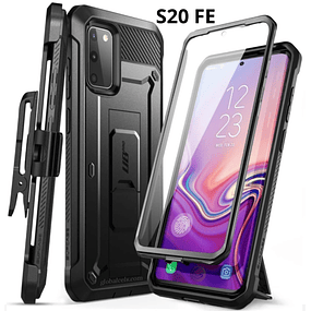 CARCASAS 360 para SAMSUNG GALAXY S20FE S20 FE 5G, protector de tres partes que abarca el marco y la parte trasera, con parante y gancho para cinturón.