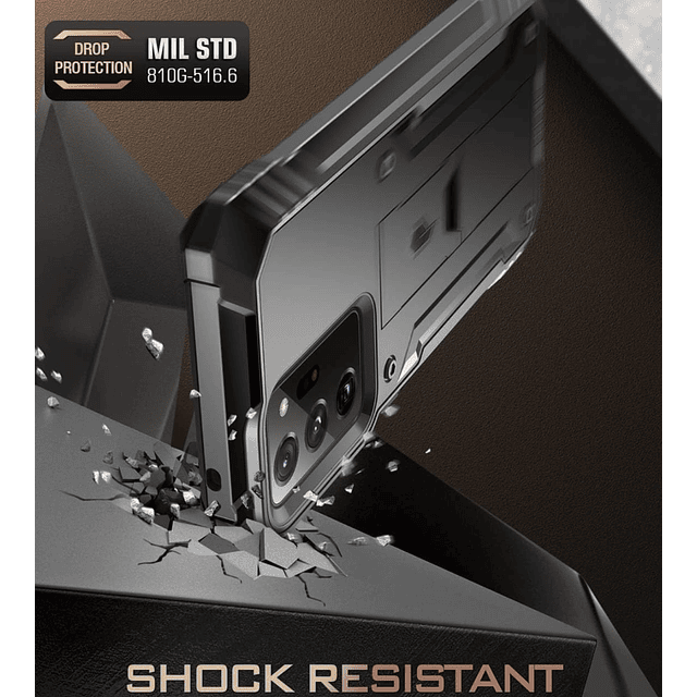 Recia Carcasa para Galaxy Note 20 Ultra, de cuerpo completo, resistente, de doble capa, a prueba de golpes, con soporte, sin protector de pantalla integrado, color negro.