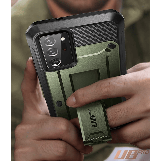 Super Carcasa para Galaxy Note 20 Ultra de 6.9 pulgadas 2020 en verde miltar con bordes negros con gancho para cinturón.Material: policarbonato y poliuretano de altísima calidadCon Certificación Militar MIL-STD-810G contra caídas.Probado contra caídas de hasta 20 pies de altura: el material es de TPU semirígido y policarbonato multicapa crea la mejor protección contra caídas del teléfono.Tiene recortes precisos que brinda fácil acceso a todos los puertos, botones y funciones, gracias al diseño exacto del UB Pro.Funda giratoria 360 grados para experimentar una comodidad fácil con clip para llevar a cinturón.Compatible solo con Galaxy Note 20 Ultra 2020, no para Note 20 normal.Nota: la funda para Galaxy Note 20 Ultra Supcase Unicorns Beetle Pro no viene con un protector de pantalla integrado, ya que el teléfono Note 20 Ultra viene con un protector de pantalla oficial Samsung preinstalado. Esta funda es compatible con el protector de pantalla oficial de Samsung.