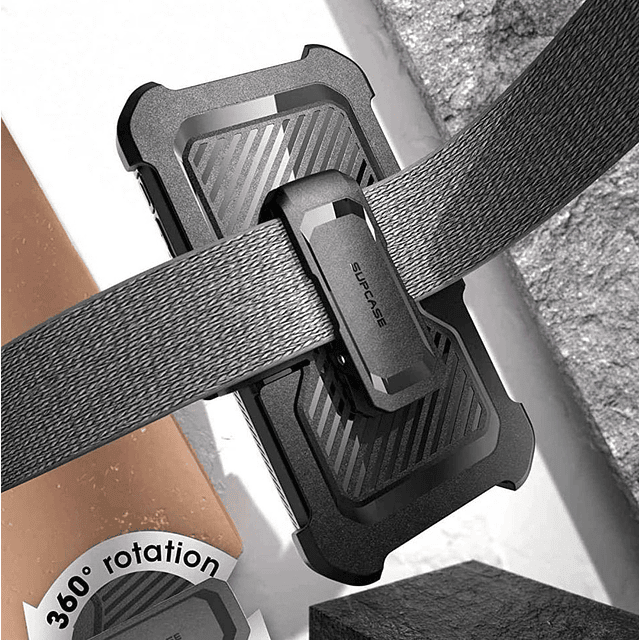 Funda giratoria 360 grados para experimentar una comodidad fácil con clip para llevar a cinturón.